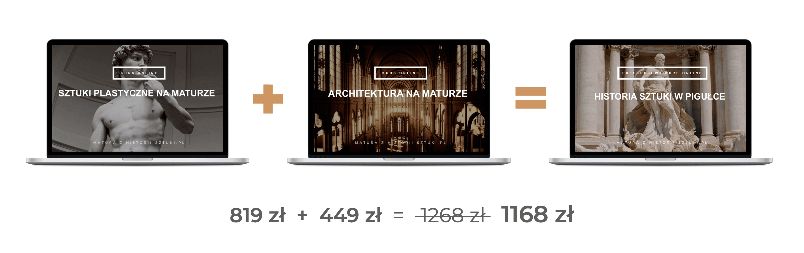 Więcej szczegółów na temat każdej z części kursu znajdziesz na stronach im poświęconych: Architektura na maturze i Sztuki plastyczne na maturze.